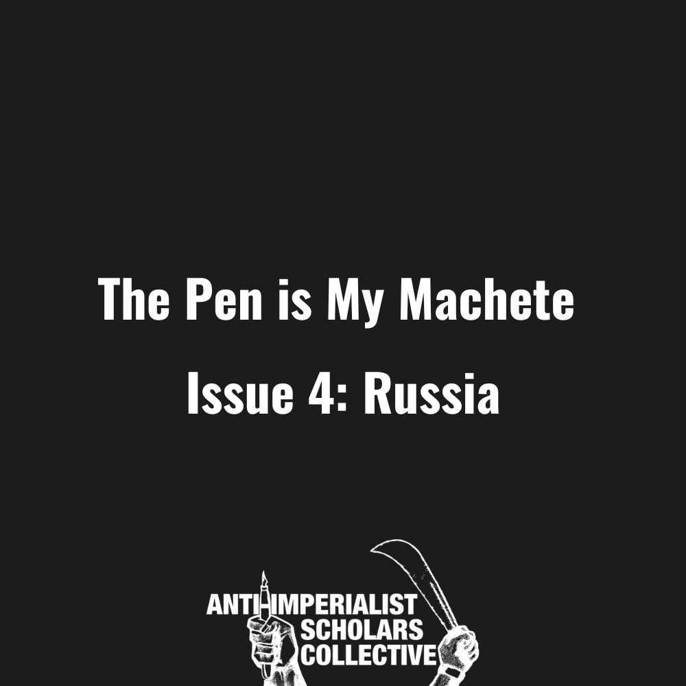 And read AISC’s The Pen is My Machete’s ISSUE #4: Russia, which brings together anti-imperialist perspectives to analyze the complex forces—from the historical to the local and global—that shape Russia’s current role in the world. As Jeannette Graulau states in the introduction, the work demonstrates that “the great heritage of the Russian Revolution, the dialectics of its historical change amid relentless imperialist aggression—including militarism and sanctions—and the forces of economic change at play during 1989, 2008, and 2014, are key for understanding Russia today.”